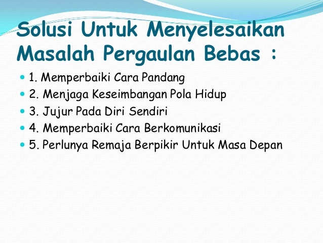 Solusi Untuk Menyelesaikan Masalah Pergaulan Bebas :